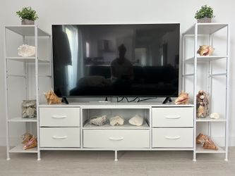 White TV Stand / Console With Drawers, Shelves, LED Light $50Miami Beach, FL