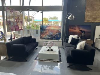 2 PIECE SOFA LOVESEAT BLACK VELVET SOFA 90x38 $585Delray Beach, FL