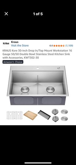 KRAUS Kore 30” Drop In/Top Mount Workstation 16 Gauge 50/50 Double Bowl Stainless Steel Kitchen$360Phoenix, AZ