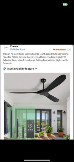 Zronon 72 Inch Black Wood Outdoor Ceiling Fan w/ Remote$140Phoenix, AZ
