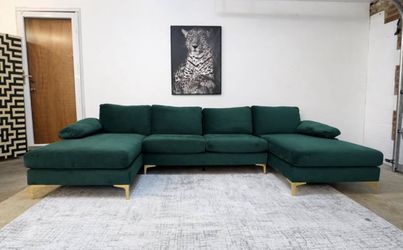 Green Velvet 3-Seater U-Shape Sectional Sofa$450Silver Spring, MD
