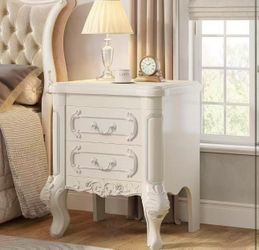 New assembled White Nightstand End Table with 2 Drawers, Carved Bedside Tables, Side Table for Bedroom, Living Room, Classic Bedroom Furniture, Night $50Norwalk, CA