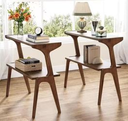 HL0175 27.56 in. Brown Rectangular Wood End Table (Set of 2), 2-Tier Sofa Side Table Narrow Couch Table for Living Room$80Norwalk, CA