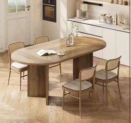 JW1164 63" Rustic Oval Dining Table for 4-6, Sturdy MDF Farmhouse Kitchen Table with Metal Strip Base, for Living Room, Office, Restaurant, Multi-Use,$120Norwalk, CA