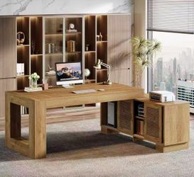 JW0991AB 78.7-Inch Executive Desk, L-Shaped Desk with 55-Inch Cabinet, Large Office Desk with Storage Shelves, Modern Computer Desk for Home Office, B$180Norwalk, CA