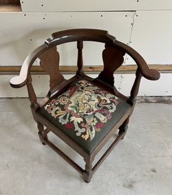 Antique Corner Chair With Needlepoint Seat Probably Mahogany Or Walnut $975Vlg Wellingtn, FL
