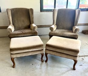Pair Of Two Wingback Chairs In Beige Velvet With 2 Ottomans$80Vlg Wellingtn, FL