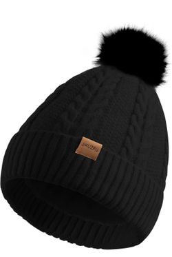 Women's Winter Fleece Beanie Hat, Warm Soft Wool Lined Knit Cross Cap with Pom Pom Snow (Black, Red, Pink or white)$22Hialeah Gardens, FL