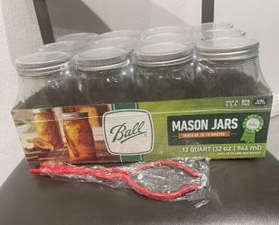 Ball Wide Mouth Clear Glass Canning Quart 32 Oz Mason Jars with Lids, 12 Pack$30Claremont, CA