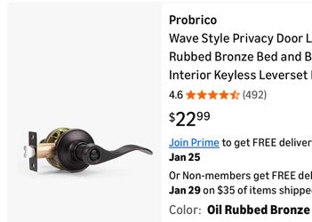 Probrico Wave Style Privacy Door Lever Oil Rubbed Bronze Bed and Bath Handle Interior Keyless Leverset Lockset, Left/Right Handed,1 Pack$20Claremont, CA