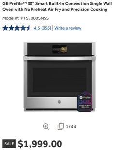 GE Profile Smart Built In Convection Oven$800Desoto, TX