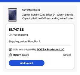 Zephyr 132 Bottle Wine Fridge $1,300Desoto, TX