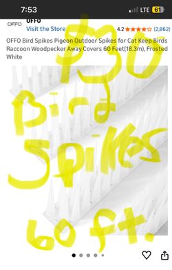 Offo Frosted White Plastic Bird Spikes $30San Diego, CA