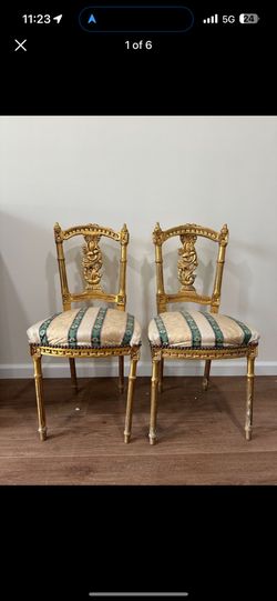 Set of 2 Empire Style Gold Leafed Carved Chaira with Upholstered Seats$50Mount Laurel Township, NJ