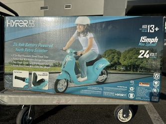 24V Hyper Toys Retro Electric Scooter, Easy Twist Throttle, Blue, Ages 13+$170Huntington Park, CA
