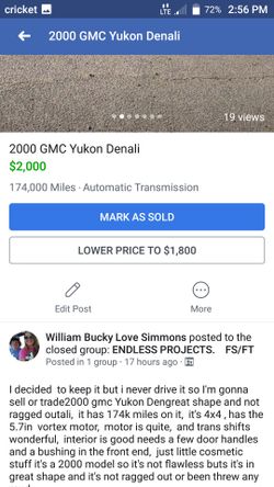 2000 GMC Yukon$2,000173k milesBelton, SC