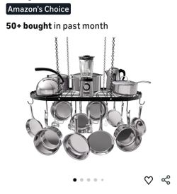 9637: New Heavy-Duty Hanging Pot Rack - 33x17 Inches - Stylish Black Alloy Steel Ceiling Storage with 15 Hooks - Organize Kitchen Cookware and Utensil$50Lancaster, TX