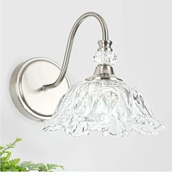2834: New 1 Piece Brushed Nickel Wall Sconce with Floral Clear Glass Shade, Brushed Nickel Finish Wall Mount Lighting for Bathroom, Modern Bathroom Va$50Lancaster, TX
