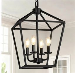 0250: New 4 Light Chandelier, Industrial Ceiling Light Black Lantern Light Fixtures with Farmhouse Metal Cage Adjustable Height Rustic Geometric Hangi$35Lancaster, TX