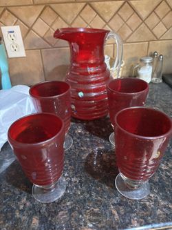 Red Glass Pitcher and 4 Drinking Glasses$25Austin, TX