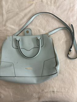 Rebecca Minkoff Saffiano Leather Top Handle Bag Light blue leather crossbody bag with strap #crossbodybag$25Calabasas, CA