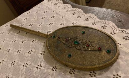 VINTAGE ORNATE VICTORIAN FILIGREE BRASS EMERALD RUBY VANITY HAND MIRROR ACCENT TABLE DECOR$40Mesa, AZ