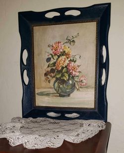 VINTAGE WOODEN NAVY BLUE FRAMED COUNTESS ZICHY FLORAL FLOWER ROSE BOUQUET PICTURE WALL ART DECOR PLAQUE$30Mesa, AZ