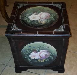 VINTAGE HAND PAINTED FLORAL FLOWER ROSE WOOD ACCENT SIDE TABLE STORAGE CABINET ORGANIZER TRUNK BRASS HANDLES$90Mesa, AZ