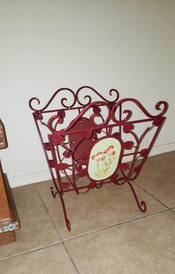 VINTAGE ORNATE BURGUNDY METAL FILIGREE SCROLL HAND PAINTED FLORAL FLOWER MAGAZINE BOOK HOLDER STORAGE ORGANIZER DECOR COLLECTABLE $30Mesa, AZ