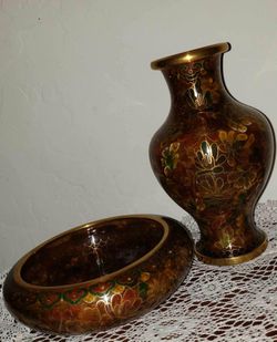 X2 VINTAGE CLOISONNE ENAMELED HAND PAINTED FLORAL FLOWER ACCENT TABLE DECOR BOWL DISH CENTERPIECE VASE SET$50Mesa, AZ