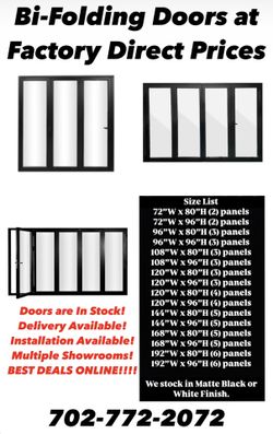 Aluminum Bi-fold Doors And Windows On Sale!!!$1Las Vegas, NV