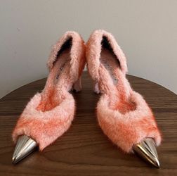 AREA x Sergio Rossi Pink/Orange Furry Spike Heels – Limited Edition Statement Shoes$800Miami, FL