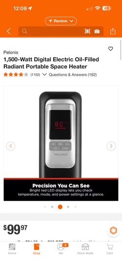 1,500-Watt Digital Electric Oil-Filled Radiant Portable Space Heater$50Renton, WA