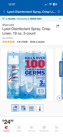 Lysol Disinfectant Spray, Crisp Linen, 19 oz, 3-count$13Renton, WA