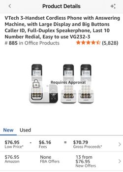 VTech 3-Handset Cordless Phone with Answering Machine, with Large Display and Bi$60Los Angeles, CA
