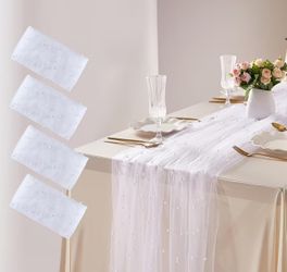 4pcs Elegant White Pearl beaded Tulle Table runners $18Lemon Grove, CA