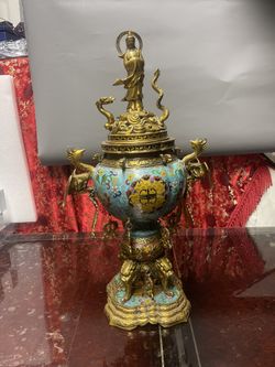 24"1/2 Marked Cloisonne Enamel Gilt Dragon Phoenix Guanyin Incense Burner Censer$1,350Alhambra, CA