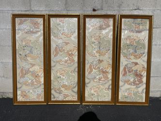 Set of 4 Vintage Traditional Asian High Quality Brocade(Maru Obi) Deco w/ Dragons & Clouds Pattern $625Alhambra, CA