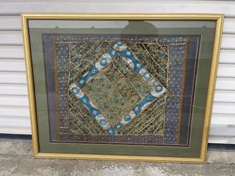 Framed Magnificent Vintage Persian or Indian Hand-made Patchwork Silk Tapestry:30”x37”$850Alhambra, CA