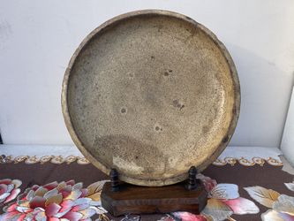 15”1/2 Large Antique Asian Pottery Serving Dish Plate w/Wooden Stand$550Alhambra, CA