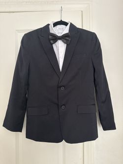 Calvin Klein 2 Piece Set Regular Black Suit With Calvin Klein Slim Fit White Dress Shirt With Black Adjustable Bow Tie. Big Boys Size 14.$80Corona, CA
