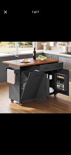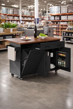 Modern Kitchen Island Cart with Storage, Power Outlet, Drop Leaf, Trash Cabinet,Black$160Santa Ana, CA
