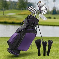 8 GOLF CLUB SET WITH PURPLE-SILVER LIGHTWEIGHT DESIGN 3 HEAD COVERS VERTICAL BAG RIGHT HAND FOR WOMENS AND BEGINNERS SALE PRICE $399.97$160Santa Ana, CA