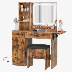 Vanity Desk with LED Lighted Mirror & Power Outlet, Makeup Table with Drawers & Cabinet $160Santa Ana, CA