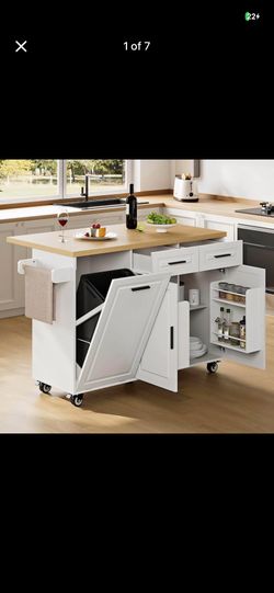 Modern Kitchen Island Cart with Storage, Power Outlet, Drop Leaf, Trash Cabinet$160Santa Ana, CA