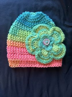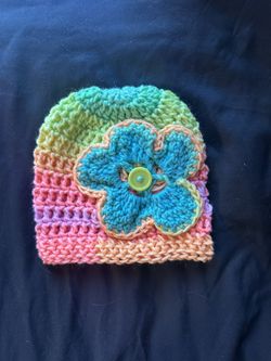 Spring Easter inspired rainbow crochet toddler beanie with flower accent$15Rancho Cucamonga, CA