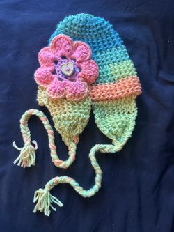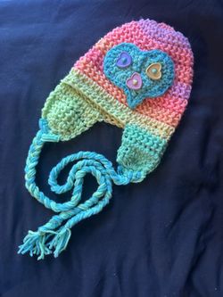 Crochet ear flap rainbow colored hat accented with a heart infant size$15Rancho Cucamonga, CA