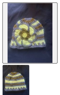 Yellow grey and brown flower accented crochet toddler hat$15Rancho Cucamonga, CA