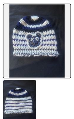 Toddler beanie accented with a crochet bear blue, purple, black and white$15Rancho Cucamonga, CA