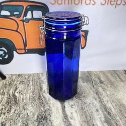 Vintage Cobalt Blue 13” Glass Storage Jar 12 Panel Cobalt Wire Bale Locking$40Magnolia Springs, AL